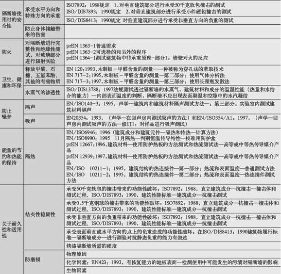 对作为室内非承重墙体的室内隔断系统,在过去的10-20年间,欧洲标准化组织和认证机构不断的做出努力,致力于制定出一套新的欧洲技术认证标准和指南,即ETA(EUROPEN TECHNICAL APPROVAL)。在这个指南中,指出了建筑隔断相关基本要求有以下几点:机械强度、稳定性及使用安全性、安全防火性、卫生、健康、环保、防止噪音、能源经济和保温。